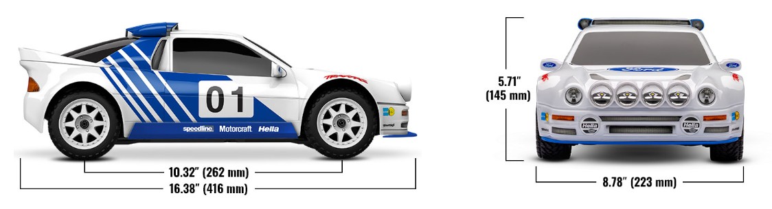 The Traxxas Mini Rally VXL Ford RS200 honors the rich history of the legendary rally car that dominated Group B racing. The original RS200 combined extreme power with a lightweight chassis and AWD traction - characteristics now reproduced for the Mini Maxx platform.